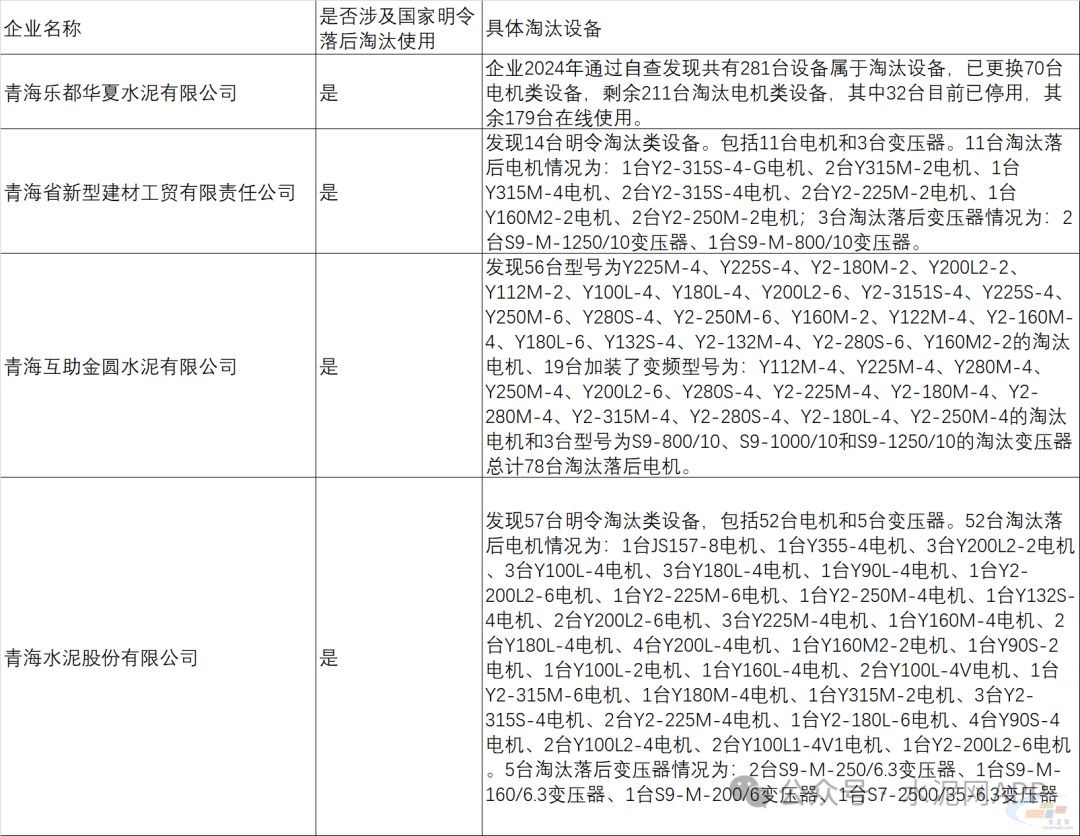 多家水泥企業(yè)存在使用淘汰類設備的情況: