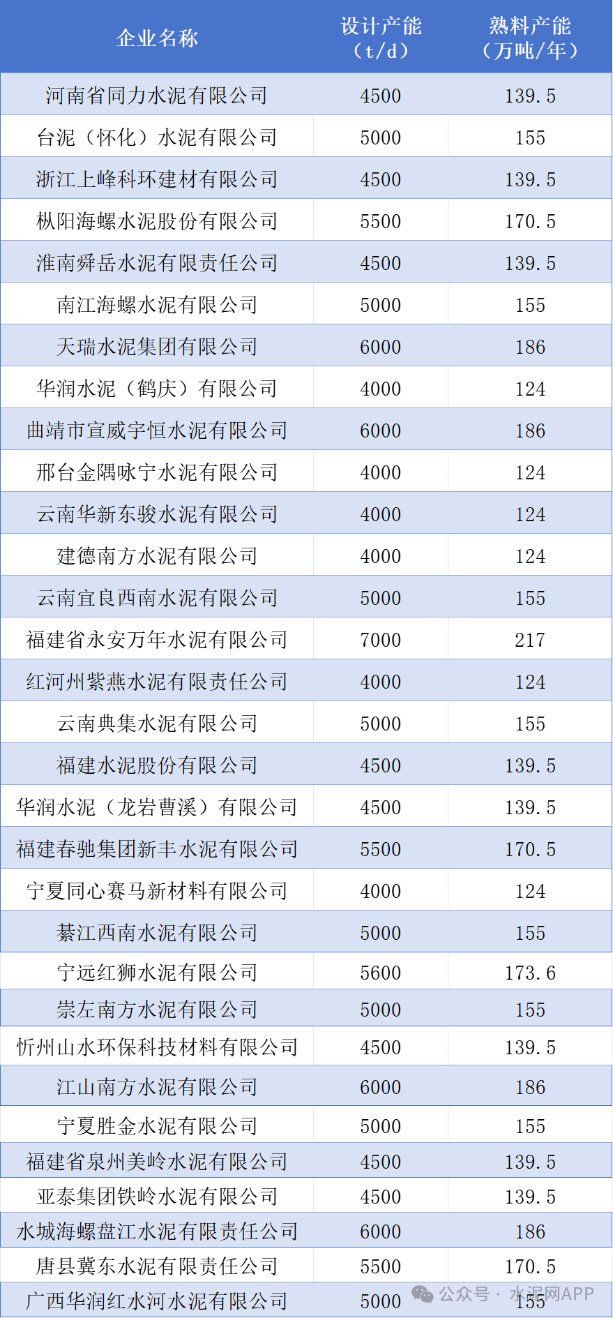 據(jù)中國水泥網(wǎng)統(tǒng)計(jì),2025年共有31條熟料生產(chǎn)線宣布不再建設(shè),合計(jì)產(chǎn)能4746.1萬噸(產(chǎn)能按照310天計(jì)算),具體見下表: