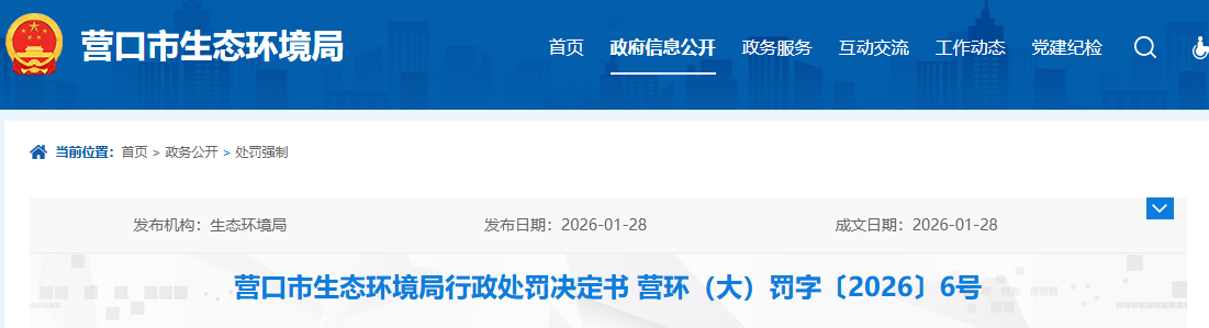 營口市環(huán)保整改一直在持續(xù)進(jìn)行中,就在近日,營口市生態(tài)環(huán)境局在官網(wǎng)發(fā)出公告,對大石橋市2家輕燒氧化鎂生產(chǎn)企業(yè)環(huán)境違法行為的行政處罰進(jìn)行了公示。